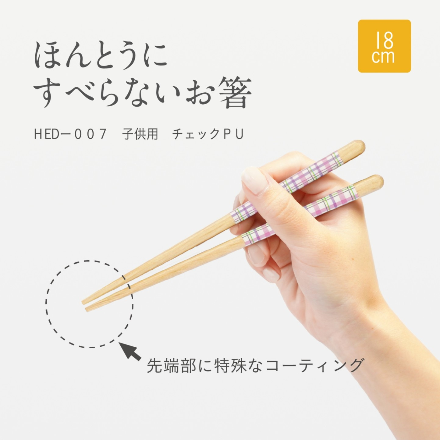 ほんとうにすべらないお箸 EDISONコラボお箸 HED-007 エジソンコラボ 子供用 チェックPU 18cm |