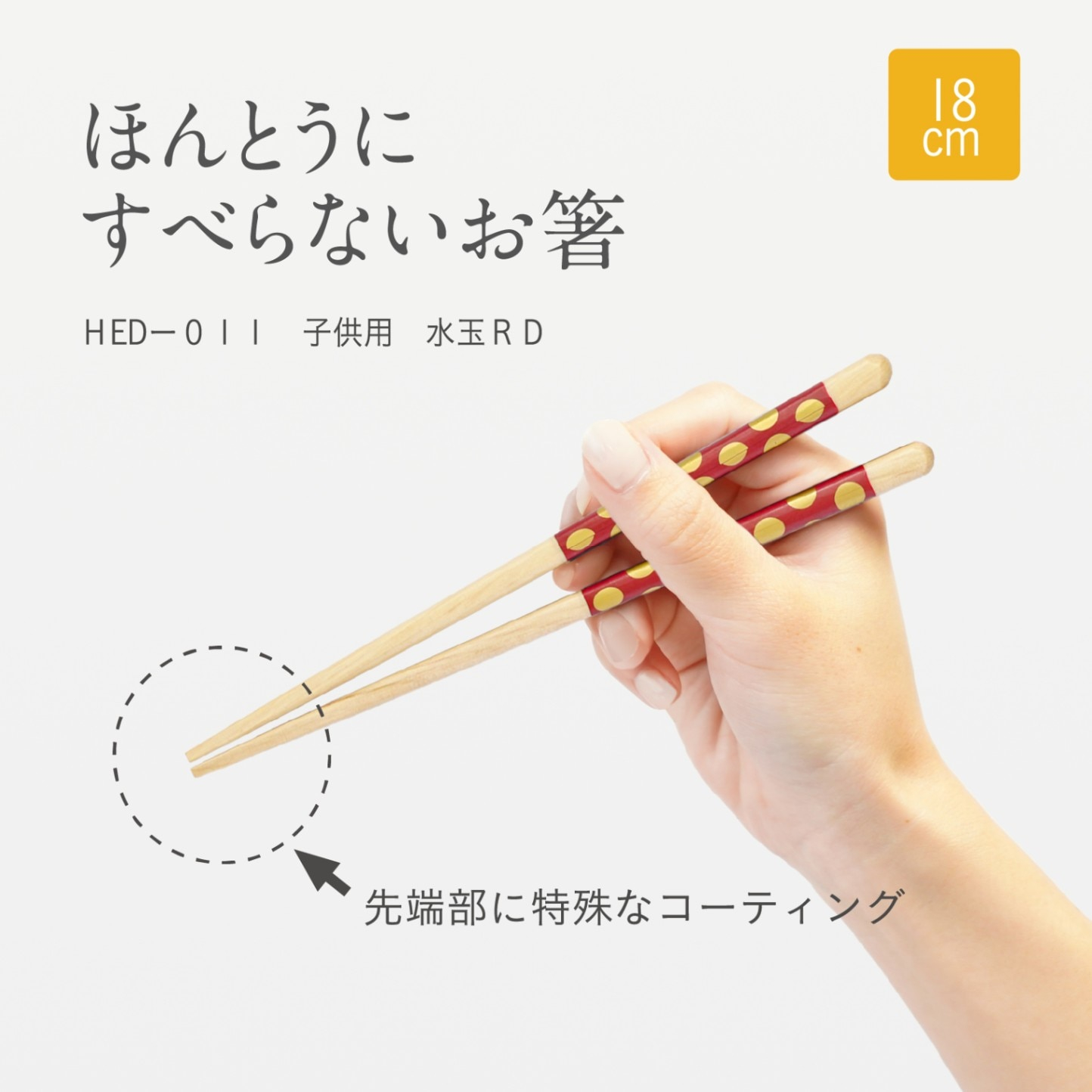 ほんとうにすべらないお箸 EDISONコラボお箸 HED-011 エジソンコラボ 子供用 水玉RD 18cm |